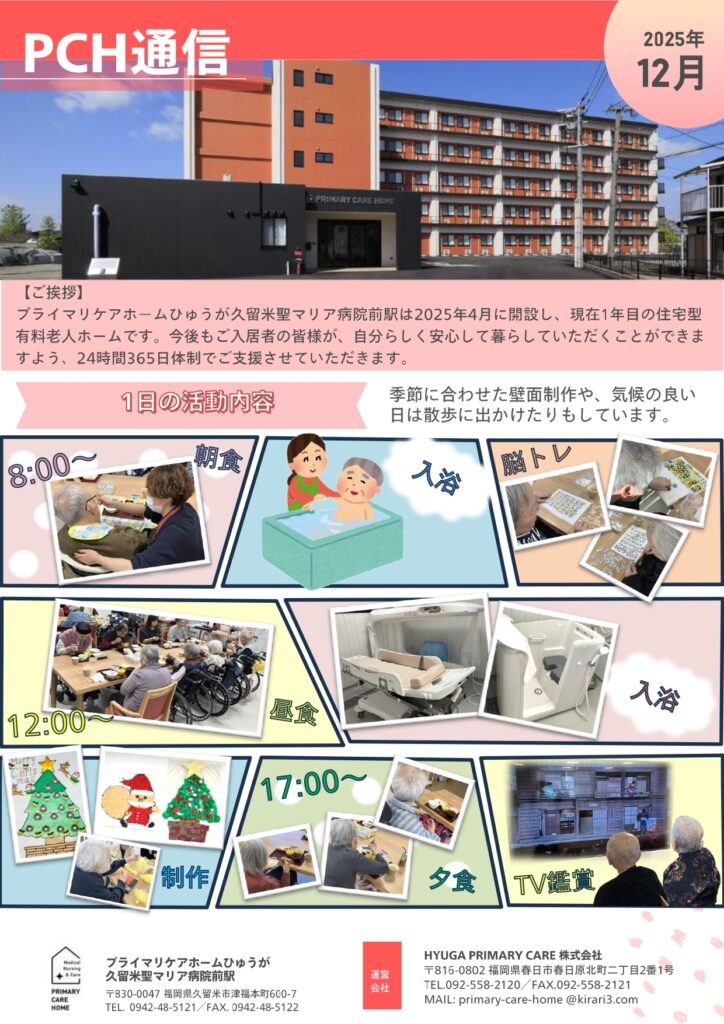 プライマリケアホームひゅうが久留米聖マリア病院前駅では、日々の生活の中に楽しみや刺激を感じていただけるよう、脳トレやテレビ鑑賞をはじめ、さまざまなレクリエーションを取り入れています。